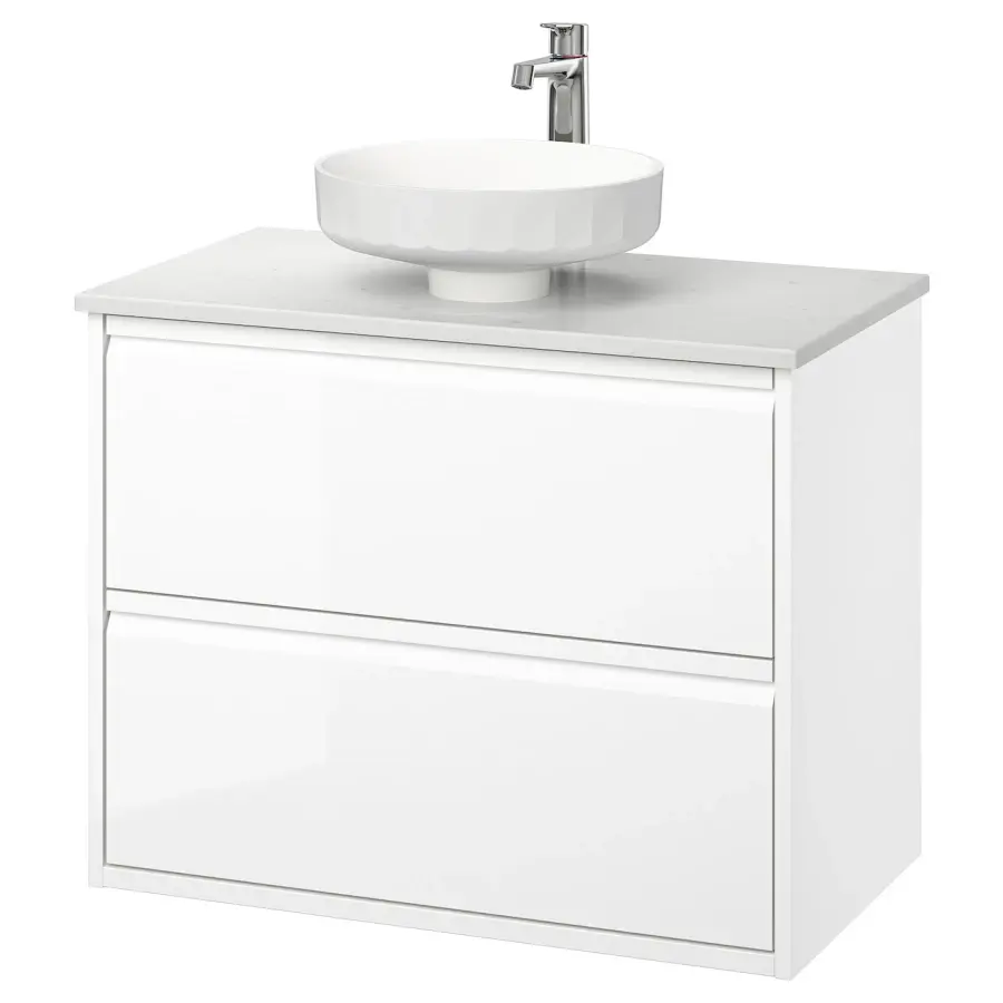 ИКЕА IKEA Мебель для ванной комнаты ÄNGSJÖN восхищает современным внешним видом и минималистскими деталями. Шкаф под умывальник в сочетании со столешницей и круглым умывальником на столешнице создают стильный элемент с уникальным характером в ванной комнате. Оригинальная икея/ikea