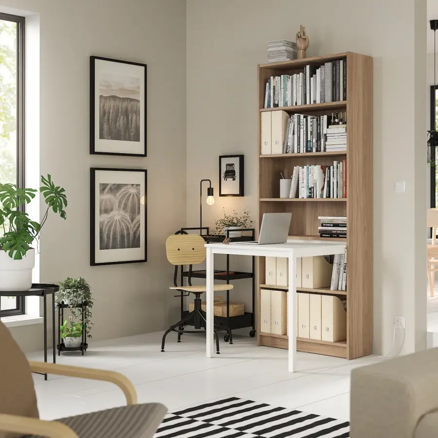 ИКЕА IKEA Полка БИЛЛИ со столом экономит место и является функциональным решением для небольших помещений. Задвиньте стол, когда закончите работать, а когда придет время обеда, просто выдвиньте его. И всегда держите свои книги под рукой на книжной полке. Оригинальная икея/ikea