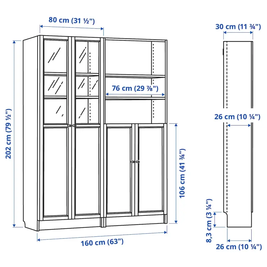 BILLY / OXBERG Пара полок с панельными/стеклянными дверцами ИКЕА