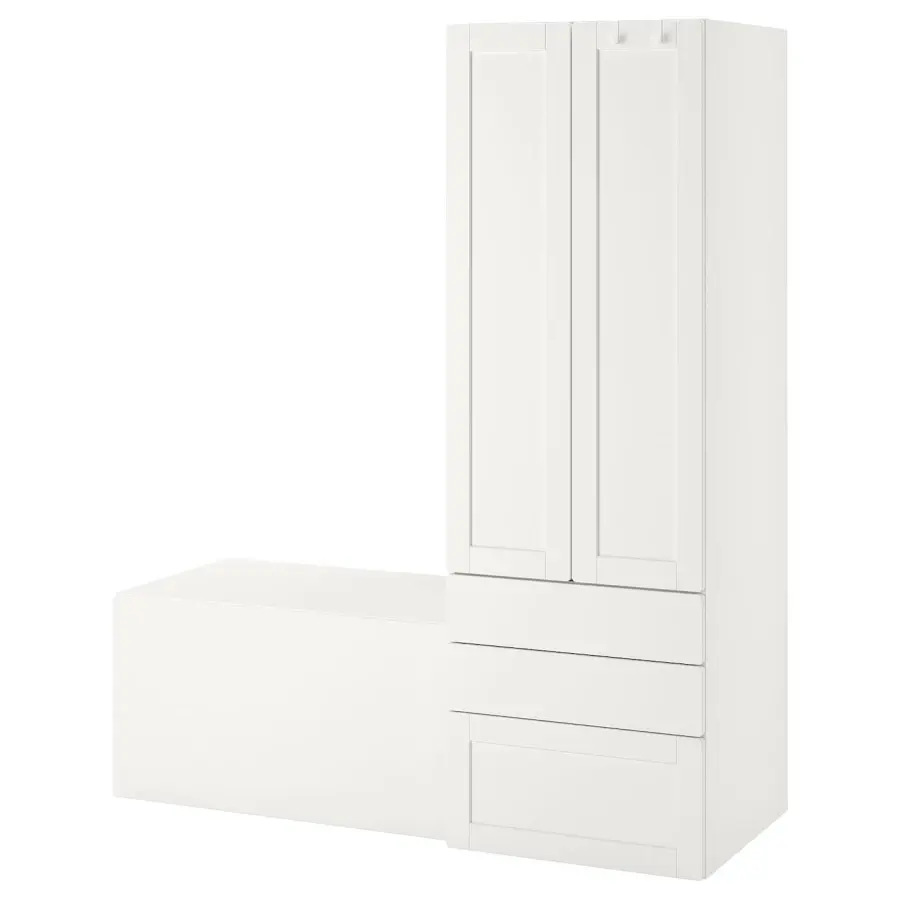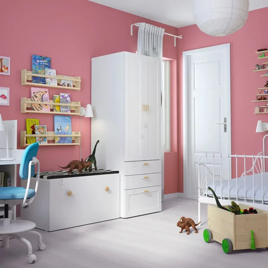ИКЕА IKEA Ваш ребенок может пользоваться этим шкафом долгие годы, так как он достаточно глубок, чтобы вместить вешалки для взрослых, и имеет внутреннее пространство, которое вы можете передвигать по мере роста ребенка. В шкафу есть место для развешивания одежды, проволочная корзина и несколько полок для сложенной одежды, а также есть ящики для носков и нижнего белья. аргумент. Оригинальная икея/ikea