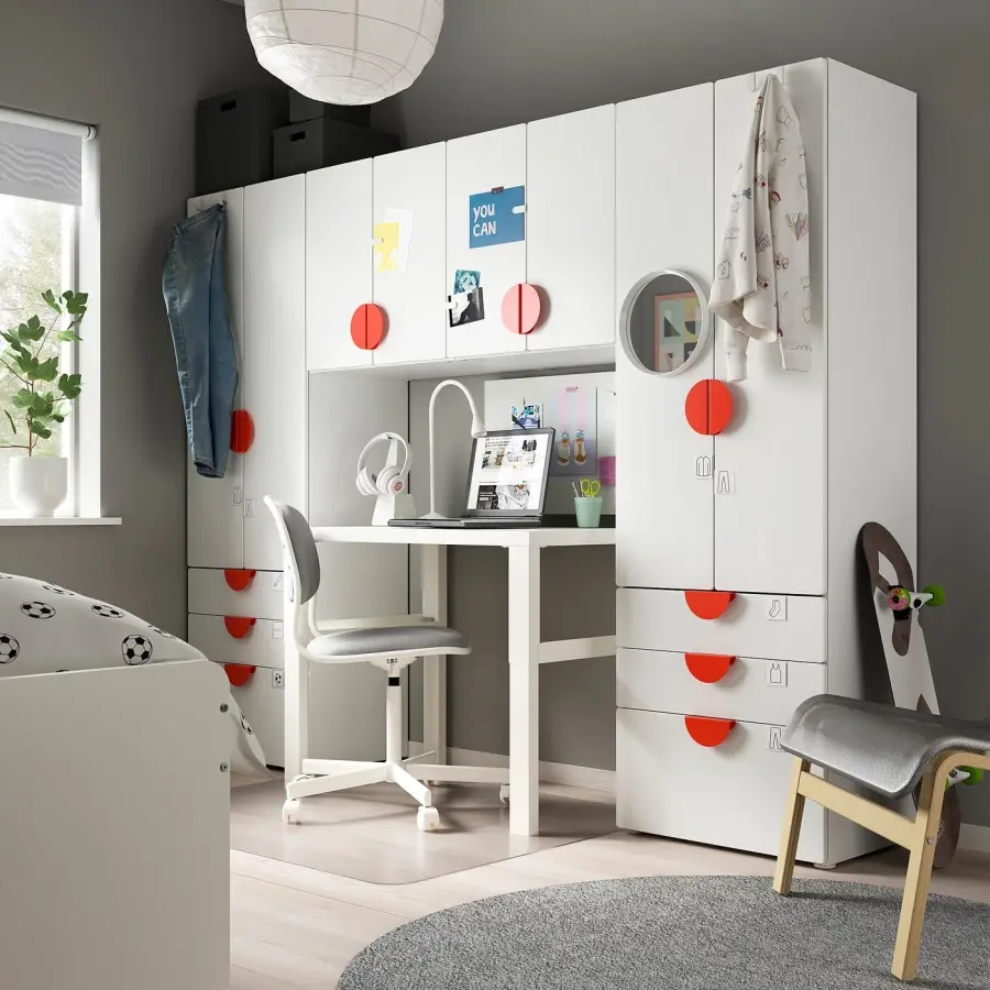 ИКЕА IKEA Идеален в условиях ограниченного пространства благодаря узкой раме. Дверцы оснащены петлями с плавным закрыванием, благодаря которым они закрываются мягко и бесшумно даже после ожесточенного спора. Чтобы вы и ваш ребенок избегали острых краев, все углы дверей SMÅSTAD мягко закруглены. Устойчиво стоит даже на неровном полу благодаря регулируемым ножкам. интерьеры из серии HJÄLPA, а для экстерьера есть продуманные решения в серии LÄTTHET. Оригинальная икея/ikea