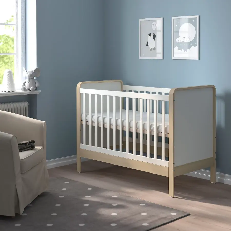 ИКЕА IKEA С серией ЭЛСКВЭРД вы создадите для своего ребенка полностью скандинавскую комнату. Эта кроватка прослужит вашему ребенку дольше, если опустить дно и заменить одну сторону перекладин на перила. Оригинальная икея/ikea
