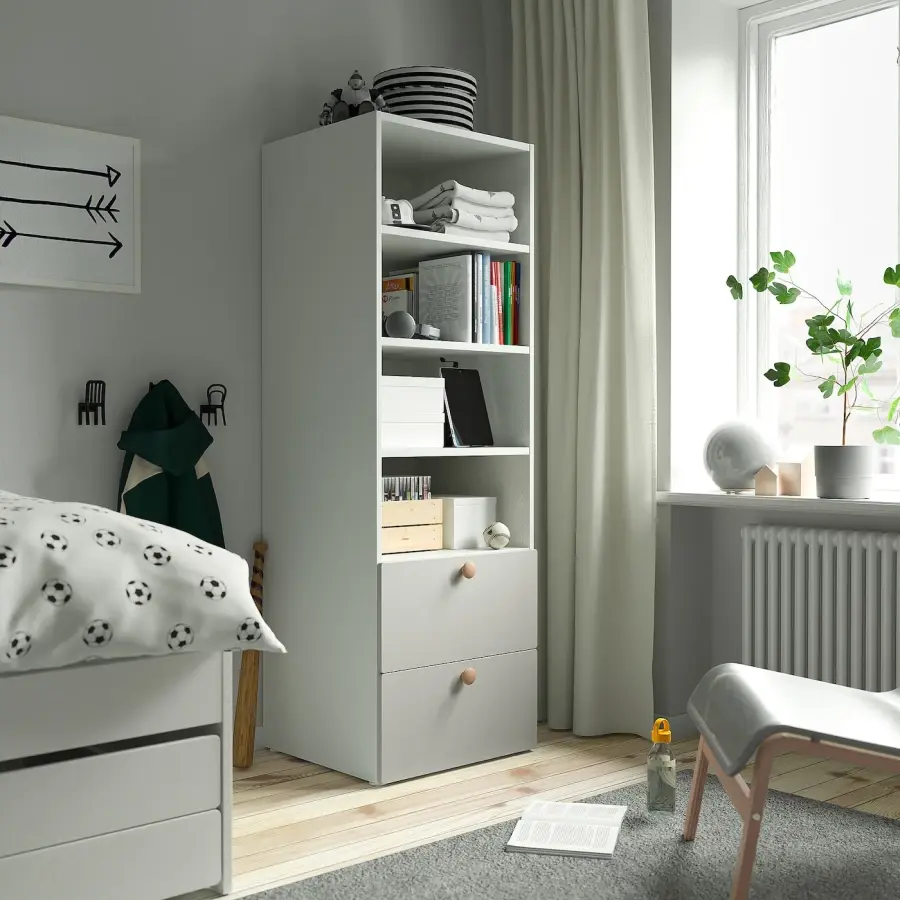ИКЕА IKEA Открытые полки идеально подходят для книг и предметов коллекционирования или для демонстрации последних проектов декоративно-прикладного искусства — и, поскольку ваш ребенок может их видеть, это стимулирует их желание играть. Идеальная высота для маленьких детей. Они могут легко доставать и находить вещи самостоятельно. Устойчиво стоят на неровных полах благодаря регулируемым ножкам, входящим в комплект. Чтобы сэкономить природные ресурсы и максимально использовать дерево, мы использовали отходы лесопиления и обрезки древесины в древесно-стружечных плитах для SMÅSTAD. Оригинальная икея/ikea