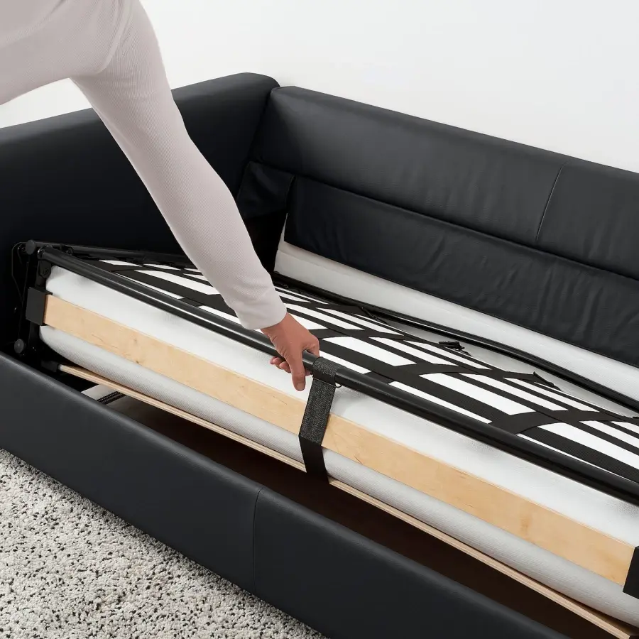 Диван 2-местный - IKEA VIMLE, 98x190см, черный, кожа, ВИМЛЕ ИКЕА