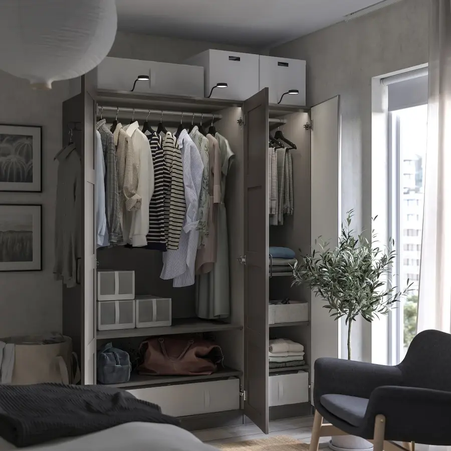 Гарантия 10 лет. Прочтите об условиях в гарантийной брошюре. Вы можете легко адаптировать эту готовую комбинацию ПАКС/КОМПЛИМЕНТ под свои нужды и вкусы с помощью инструмента планирования ПАКС. Регулируемые ножки позволяют компенсировать неровности пола. Петли со встроенными демпферами захватывают дверь и закрывают ее медленно, бесшумно и мягко. С помощью PAX Planner вы можете легко дополнить свою комбинацию встроенным освещением. После выбора источника света проектировщик определит, какие аксессуары вам понадобятся для завершения решения. Знаете ли вы, что передвигать внутренние органайзеры по вкусу или менять их позже проще простого? С небольшими изменениями вы можете изменить решение для хранения так, чтобы оно подходило к вашей одежде, а не наоборот. Откройте это решение в планировщике PAX, чтобы изменить его в соответствии со своими потребностями. Еще один ящик? Меньше? Добавить раму или поменять двери? Без проблем. Если выбрать зеркальные двери, комната сразу станет больше, светлее и просторнее. Отличный способ преобразить узкую прихожую или крохотную спальню.