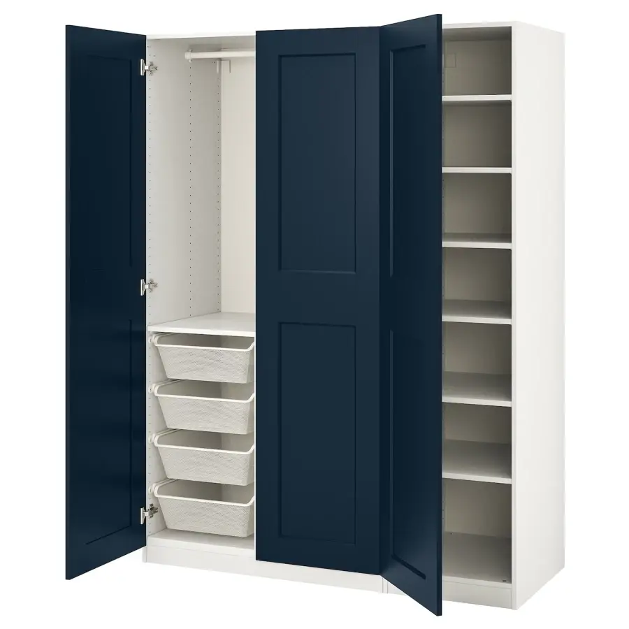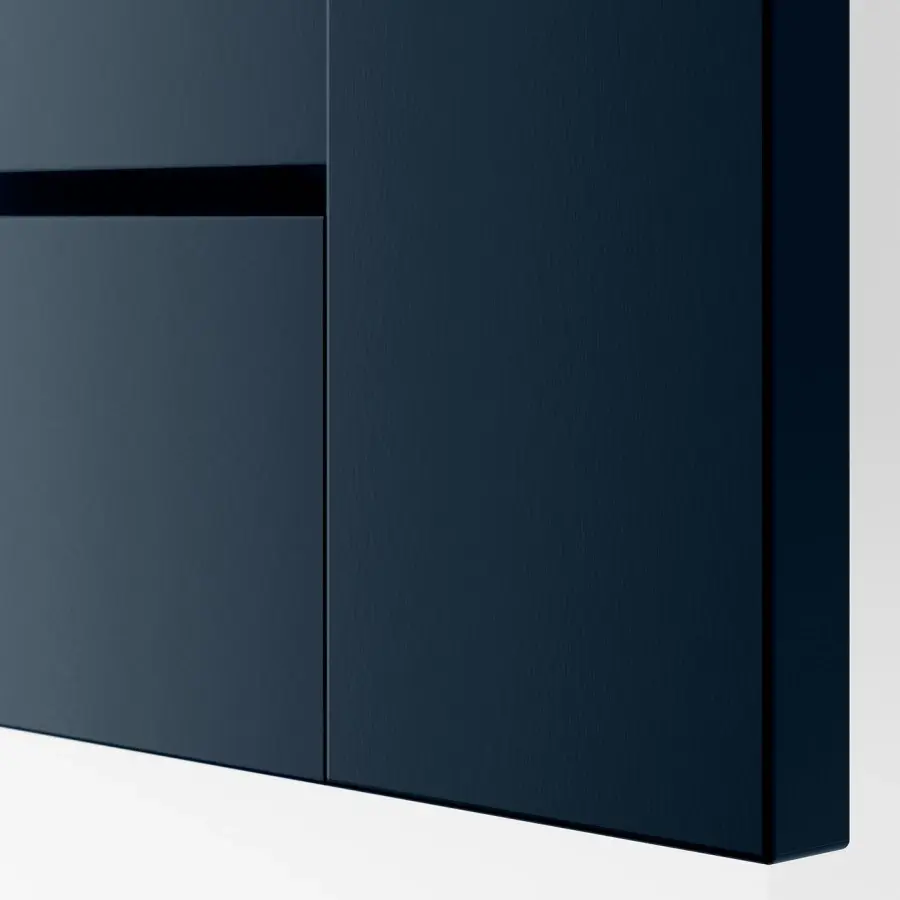 Гарантия 10 лет. Прочтите об условиях в гарантийной брошюре. Вы можете легко адаптировать эту готовую комбинацию ПАКС/КОМПЛИМЕНТ под свои нужды и вкусы с помощью инструмента планирования ПАКС. Регулируемые ножки позволяют компенсировать неровности пола. Петли со встроенными демпферами захватывают дверь и закрывают ее медленно, бесшумно и мягко. С помощью PAX Planner вы можете легко дополнить свою комбинацию встроенным освещением. После выбора источника света проектировщик определит, какие аксессуары вам понадобятся для завершения решения. Сетчатая корзина обеспечивает циркуляцию воздуха и идеально подходит для хранения сложенной одежды, носков или аксессуаров. Знаете ли вы, что передвигать внутренние органайзеры по вкусу или менять их позже проще простого? С небольшими изменениями вы можете изменить решение для хранения так, чтобы оно подходило к вашей одежде, а не наоборот. Дверь GRIMO покрыта темно-синей пленкой, которая идеально сочетается с серией HAUGA.