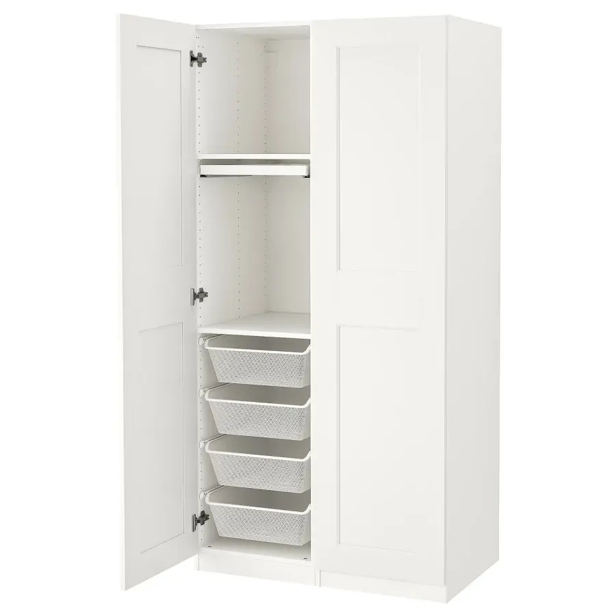 ИКЕА IKEA 10 лет гарантии. Прочтите об условиях в гарантийной брошюре. Вы можете легко увидеть и дотянуться до своих брюк, так как вешалка для брюк выдвинута. Регулируемые ножки позволяют компенсировать любые неровности пола. Петли со встроенными демпферами захватывают дверь и закрывают ее медленно, бесшумно и мягко. С PAX Planner вы можете легко дополнить свою комбинацию со встроенным освещением. После выбора источника света специалист по планированию определит, какие аксессуары вам нужны для завершения решения. Сетчатая корзина обеспечивает циркуляцию воздуха и идеально подходит для хранения сложенной одежды, носков или аксессуаров. Готовую комбинацию ПАКС/КОМПЛИМЕНТ можно легко адаптировать к вашим потребностям и вкусу с помощью инструмента планирования ПАКС. Чувствуете себя еще более организованным? Дополните ящики ящиками КОМПЛИМЕНТ, их можно комбинировать, чтобы они идеально подходили друг другу, чтобы вы могли использовать ящик полностью. Оригинальная икея/ikea