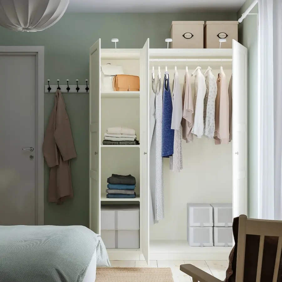 ИКЕА IKEA 10 лет гарантии. Прочтите об условиях в гарантийной брошюре. Вы можете легко адаптировать эту готовую комбинацию ПАКС/КОМПЛИМЕНТ в соответствии с вашими потребностями и вкусом с помощью инструмента планирования ПАКС. Регулируемые ножки позволяют компенсировать любые неровности пола. Петли со встроенными демпферами захватывают дверь и закрывают ее медленно, бесшумно и мягко. После выбора источника света планировщик определит, какие аксессуары вам понадобятся для завершения решения. Знаете ли вы, как легко перемещать внутренние органайзеры по вкусу или менять их позже? С небольшими изменениями вы можете изменить решение для хранения в соответствии с вашей одеждой, а не наоборот. Комната сразу же кажется больше, светлее и просторнее, выбрав зеркальные двери. Отличный способ преобразить узкую прихожую или крошечную спальню. Оригинальная икея/ikea