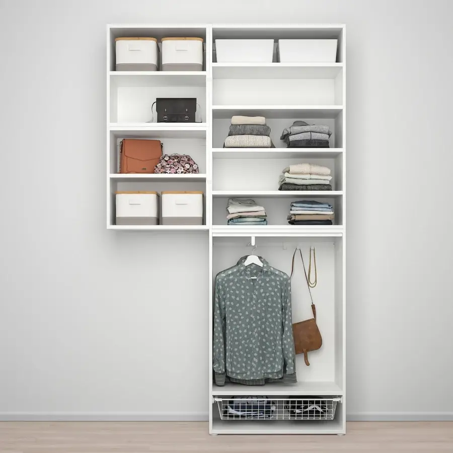 Вы можете легко трансформировать свое решение для хранения в соответствии с различными потребностями или создать другой внешний вид. Просто добавьте, уберите или переместите детали. Вы можете легко соединить несколько рамок PLATSA друг с другом с помощью прилагаемых зажимов. Их легко устанавливать и снимать без использования инструментов, и вы избегаете видимых отверстий для винтов снаружи. Рамку легко установить, просто щелкнув ее, никаких инструментов не требуется. Регулируемые ножки позволяют компенсировать неровности пола. С помощью инструмента планирования дома PLATSA вы можете легко создать решение, адаптированное к вам, вашему дому и вашим потребностям в хранении.