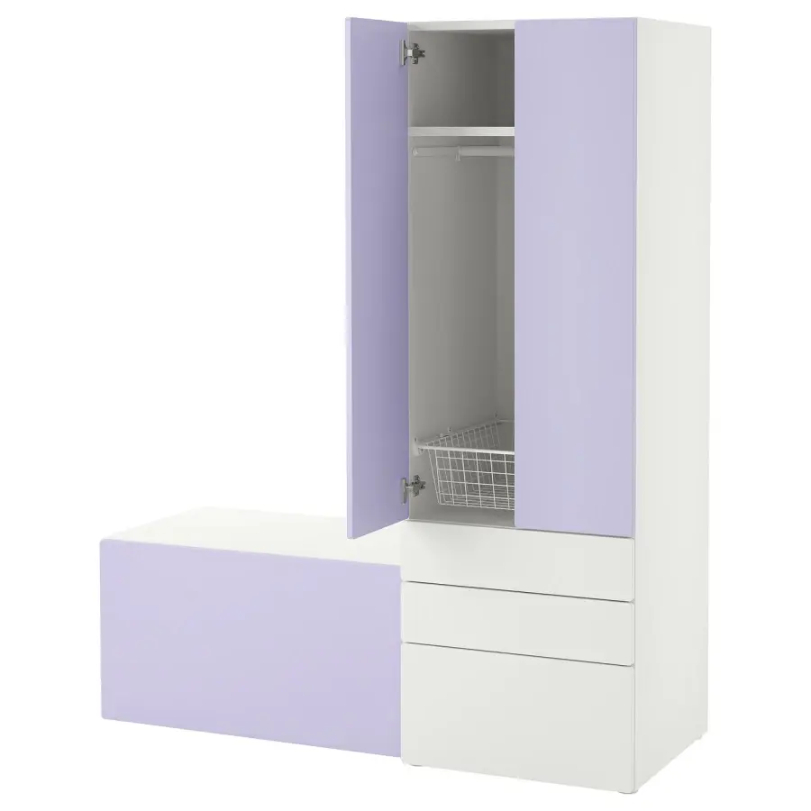 ИКЕА IKEA Гибкая комбинация для хранения, которую можно регулировать по мере роста вашего ребенка и появления новых потребностей. Здесь достаточно места для одежды, ящики для больших и маленьких вещей и скамейка, на которой можно удобно расположиться с книгой. Оригинальная икея/ikea