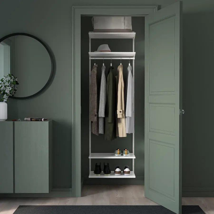 ИКЕА IKEA Плотные пальто, зимние шапки и ботинки или куртки, шапки и сандалии – независимо от погоды и времени года, в настенной системе хранения BOAXEL найдется место для всей вашей верхней одежды. Оригинальная икея/ikea