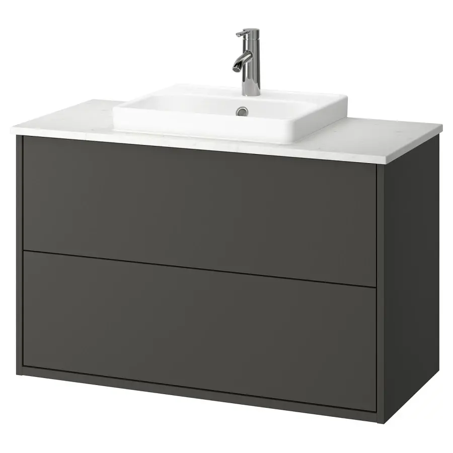 ИКЕА IKEA Мебель для ванной комнаты HAVBÄCK отличается простым, непритязательным дизайном. Шкаф под умывальник, совмещенный со столешницей, а также частично утопленный в столешницу умывальник может стать уникальным элементом дизайна, если добавить к нему ручки или ручки. Оригинальная икея/ikea