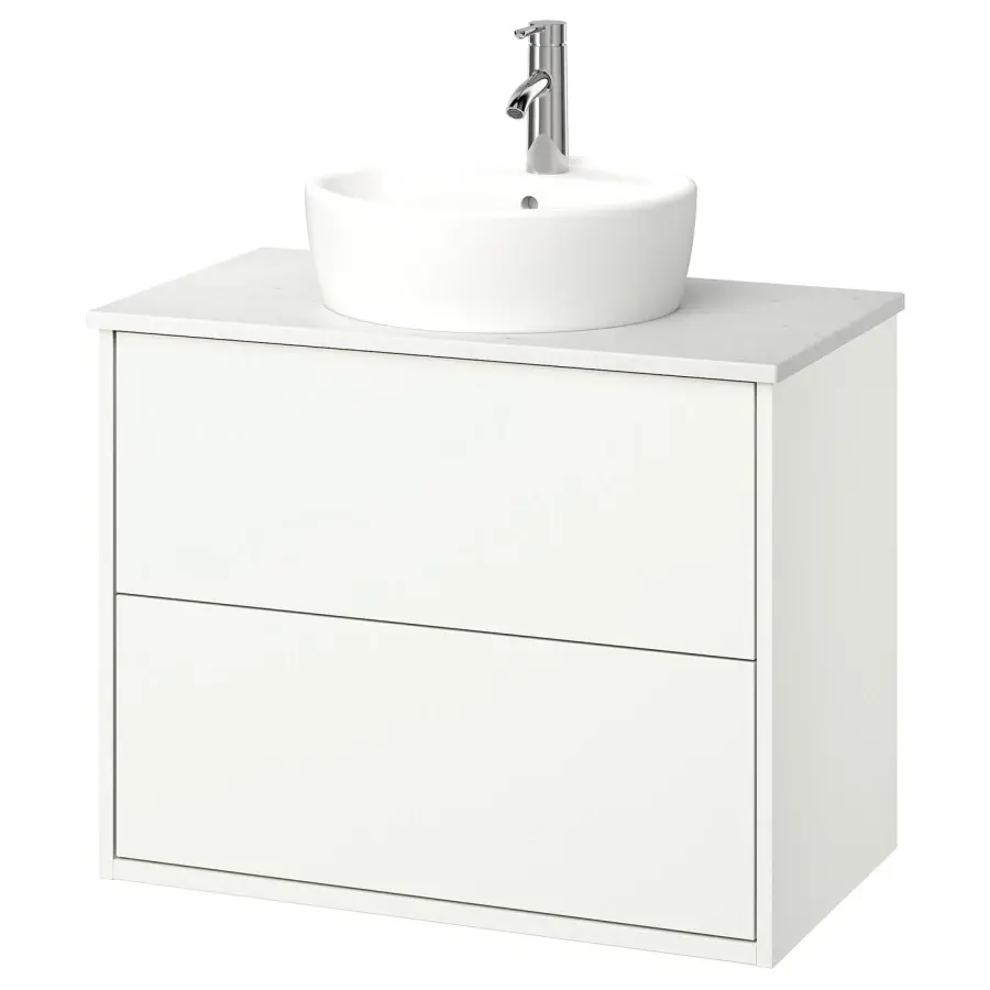 ИКЕА IKEA Мебель для ванной комнаты HAVBÄCK имеет простой, незатейливый дизайн. Шкаф под умывальник со столешницей в сочетании с умывальником с круглой столешницей приобретет уникальный характер, если вы добавите ручки и ручки по вашему выбору. Оригинальная икея/ikea