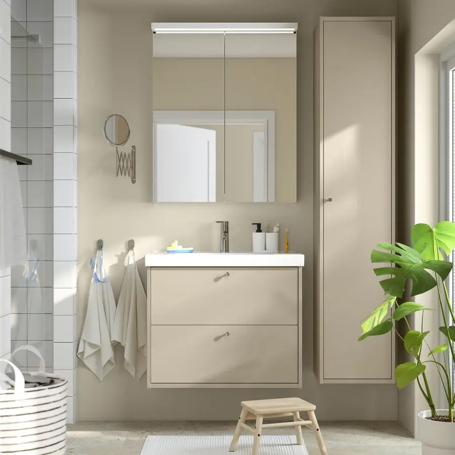 ИКЕА IKEA Любители спокойствия и простоты оценят незамысловатый внешний вид мебели для ванной комнаты серии ХАВБЭК. Высокий шкаф использует вертикальное пространство для хранения, не занимая много места на полу. Оригинальная икея/ikea