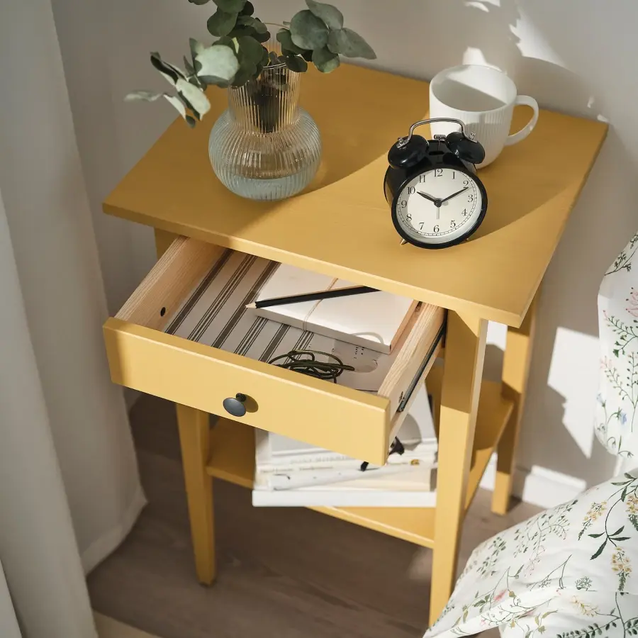 ИКЕА IKEA Высокий стол, который хорошо подойдет рядом с кроватью, в прихожей или в качестве столика рядом с любимым креслом. Желтая морилка придает помещению нотку цвета, а массив дерева восхищает своей естественной красотой. Оригинальная икея/ikea