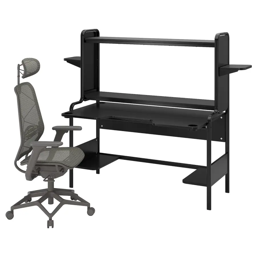 Игровой стол и стул - IKEA FREDDE/STYRSPEL, черный/серый, 185х74х146 см, ФРЕДДЕ/СТИРСПЕЛ ИКЕА