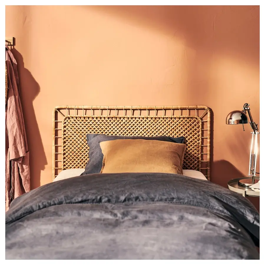 ИКЕА IKEA Квалифицированные мастера соткали изделие вручную, поэтому каждое из них уникально. Ротанг — это натуральный материал, который прекрасно стареет и со временем приобретает свой уникальный характер. Этот материал приносит в ваш дом частичку природы и дарит ощущение спокойствия и тепла. не нужно крепить его к стене. Ножки изголовья предназначены для стен как с плинтусом, так и без него. Оригинальная икея/ikea
