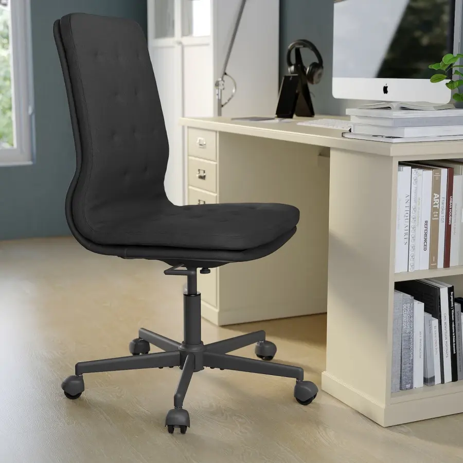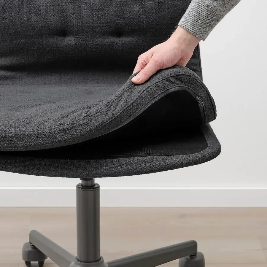 ИКЕА IKEA 10 лет гарантии. Подробнее об условиях читайте в гарантийном буклете. Подходит для использования в бизнесе. Дизайн подчеркнут слегка изогнутыми линиями, прошитыми деталями и удобным механизмом, незаметно спрятанным под сиденьем. Чехол легко содержать в чистоте, поскольку он съемный и его можно стирать в машине, а благодаря идеальной посадке он выглядит так же аккуратно, как и фиксированный чехол. Это придает традиционному чехлу теплый вид. Регулируемое по высоте сиденье позволяет регулировать высоту так, чтобы спина и ноги находились под углом 90°. Поясничная опора помогает поддерживать правильную осанку во время сидения, что снижает нагрузку на мышцы нижней части спины. Вы сидите удобно, дольше и с расслабленной осанкой. Повышенная устойчивость, поскольку функция наклона блокируется, когда спинка находится в вертикальном положении. Функция безопасности блокирует ролики, когда в кресле никого нет, и надежно удерживает его на месте, когда вы встаете. Оригинальная икея/ikea
