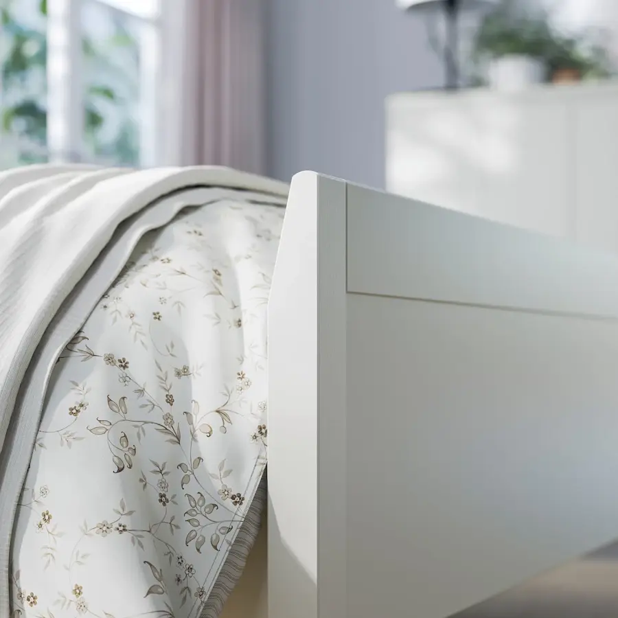 ИКЕА IKEA Кровать имеет прочную и надежную конструкцию, что позволяет использовать ее долгие годы. Вы можете легко пропылесосить под рамой кровати, чтобы содержать пространство в чистоте и без пыли. Под кроватью достаточно места для ящиков для хранения - идеально подходит для хранения дополнительных одеял и подушек. Регулируемые боковины кровати позволяют использовать матрасы разной толщины. и увеличить эластичность матраса, а также зоны комфорта, которые приспосабливаются к вашему телу. Оригинальная икея/ikea
