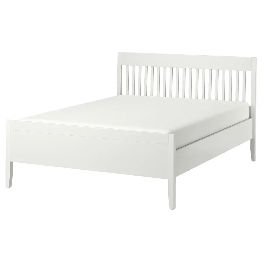 ИКЕА IKEA Кровать имеет прочную и надежную конструкцию, что позволяет использовать ее долгие годы. Вы можете легко пропылесосить под рамой кровати, чтобы содержать пространство в чистоте и без пыли. Под кроватью достаточно места для ящиков для хранения - идеально подходит для хранения дополнительных одеял и подушек. Регулируемые боковины кровати позволяют использовать матрасы разной толщины. Оригинальная икея/ikea