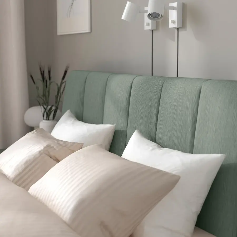 ИКЕА IKEA Простой дизайн, обивка подходящего цвета, металлические элементы и мягкий, удобный подголовник. ТЭЛЛОСЕН имеет множество хорошо продуманных деталей, которые придадут вашей спальне современный характер. Кровать легко сочетается с другой мебелью. Оригинальная икея/ikea