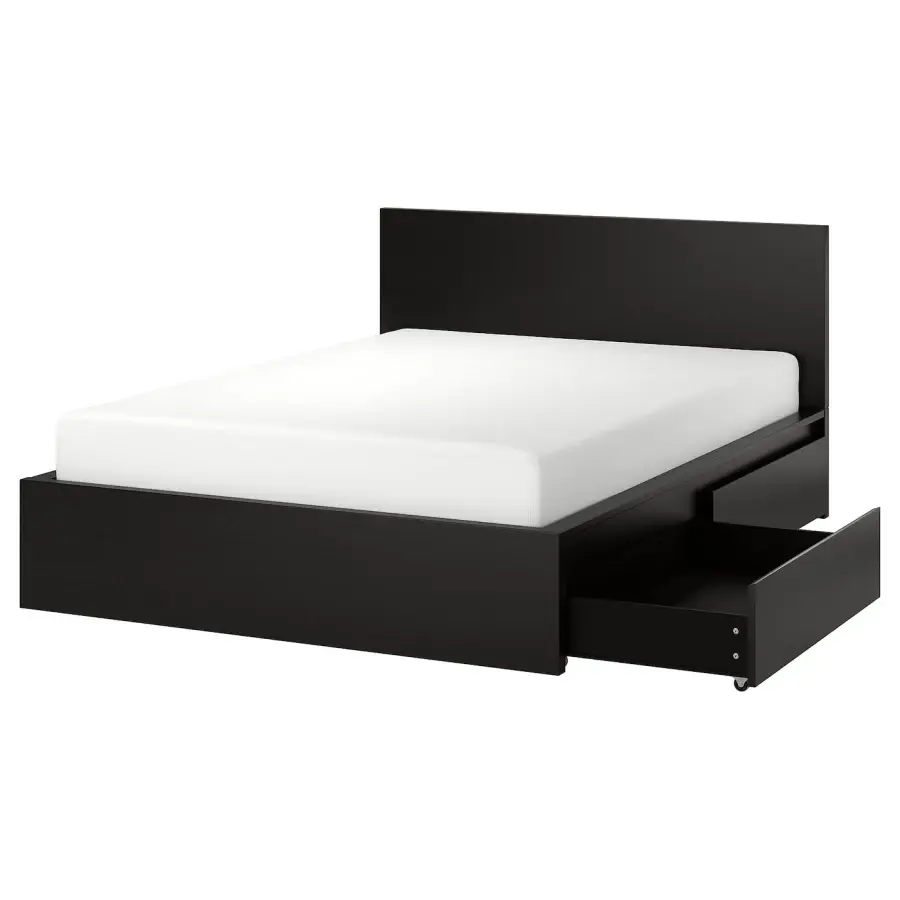 ИКЕА IKEA Простой дизайн, облицован шпоном массива дерева. Поставьте кровать отдельно или изголовьем к стене. В комплекте с просторными контейнерами, которые плавно скользят на колесах. Оригинальная икея/ikea