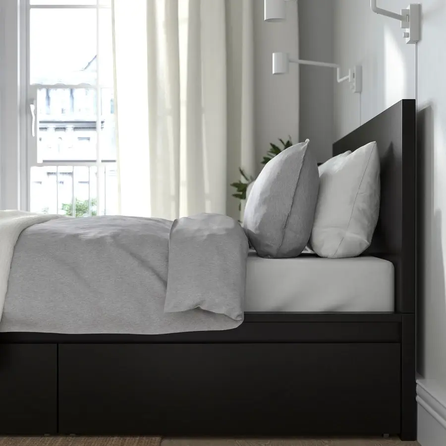 ИКЕА IKEA Простой дизайн, облицован шпоном массива дерева. Поставьте кровать отдельно или изголовьем к стене. В комплекте с просторными контейнерами, которые плавно скользят на колесах. Оригинальная икея/ikea