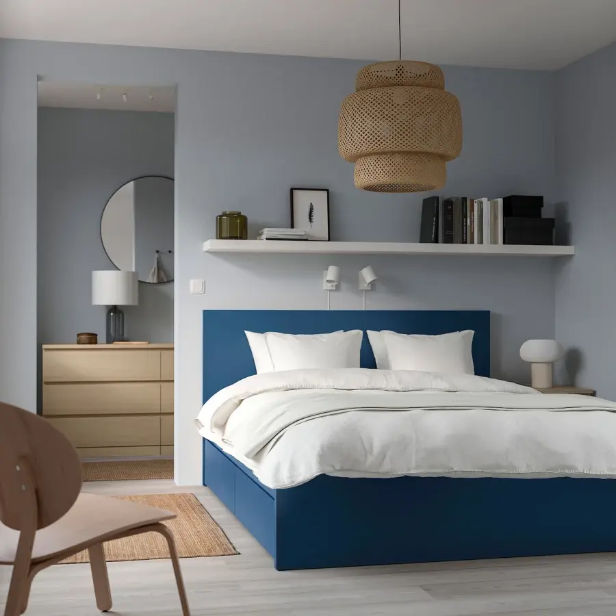 ИКЕА IKEA Простая синяя кровать, которая привнесет элегантность и покой в вашу спальню. Вы также получаете удобные, просторные контейнеры, которые плавно скользят на колесах. Оригинальная икея/ikea