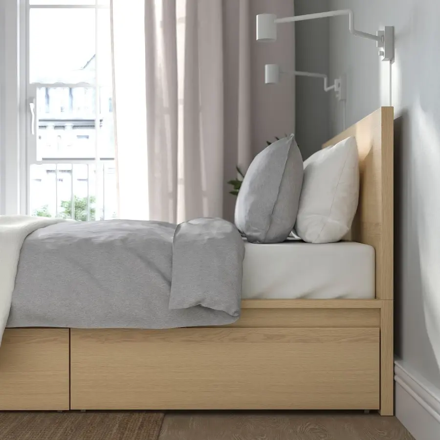 ИКЕА IKEA Простой дизайн, облицован шпоном массива дерева. Поставьте кровать отдельно или изголовьем к стене. В комплекте с просторными контейнерами, которые плавно скользят на колесах. Оригинальная икея/ikea