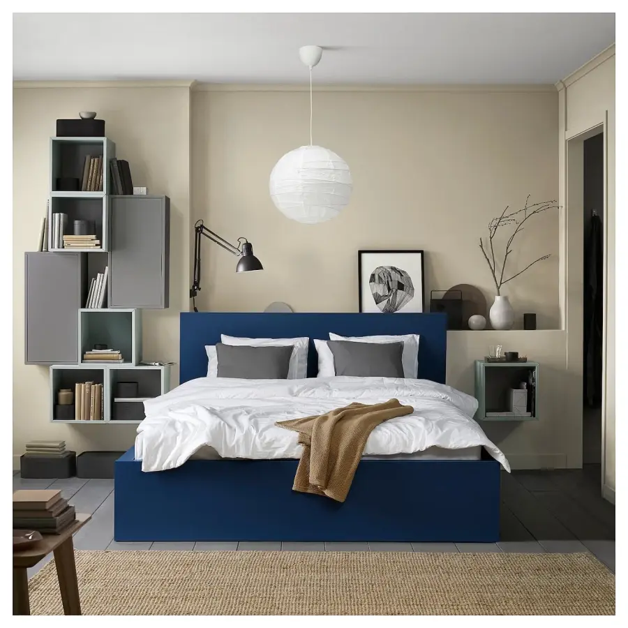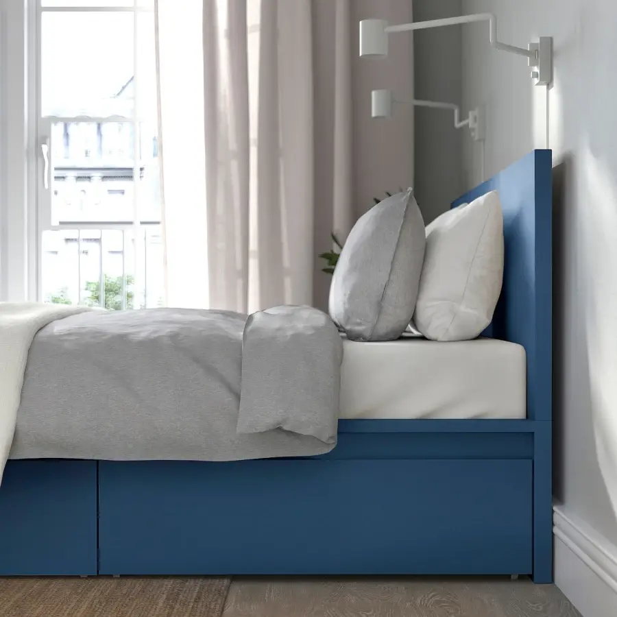 ИКЕА IKEA Простая синяя кровать, которая привнесет элегантность и покой в вашу спальню. Вы также получаете удобные, просторные контейнеры, которые плавно скользят на колесах. Оригинальная икея/ikea