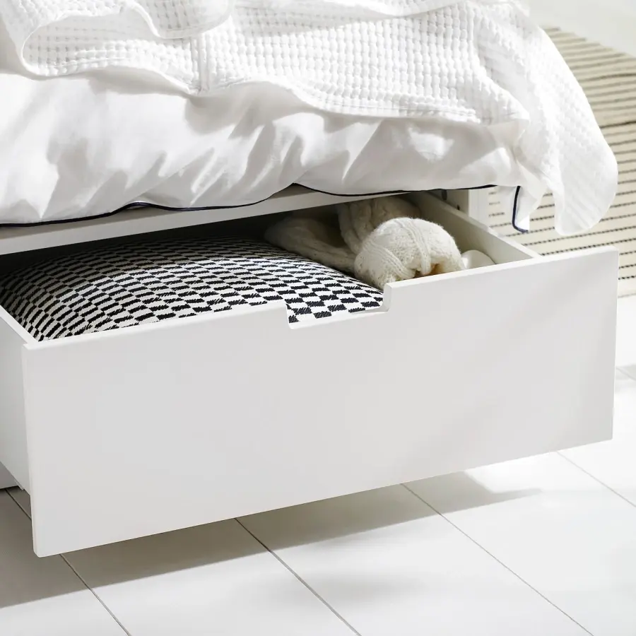 ИКЕА IKEA Компактный дизайн идеально подходит для ограниченного пространства или под низкими потолками, поэтому вы можете максимально использовать имеющееся пространство. Большое пространство для хранения аккуратно спрятано под кроватью в 6 больших ящиках. Идеально подходит для хранения одеял, подушек и постельного белья. Ящики с плавным закрыванием выдвигаются плавно, медленно и бесшумно. Этот универсальный каркас кровати будет отлично смотреться с выбранным вами текстилем и мебелью для спальни. Оригинальная икея/ikea