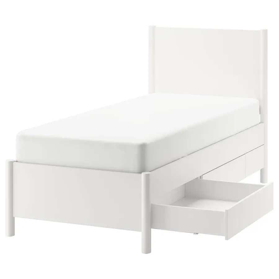 ИКЕА IKEA В серии ТОНСТАД классический дизайн сочетается с восхитительной кремовой отделкой, придающей мебели благородный вид. Каркас кровати оснащен выдвижными ящиками с плавным закрыванием, что позволяет оптимально использовать пространство под кроватью. Оригинальная икея/ikea