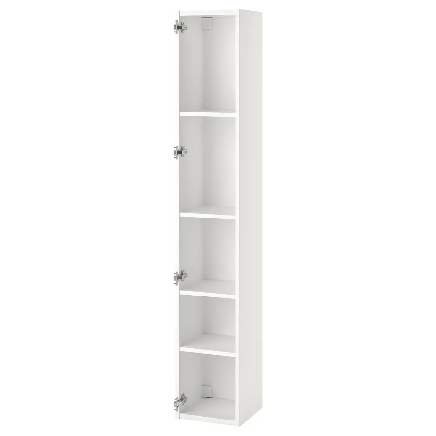 ИКЕА IKEA Этот высокий шкаф с 4 полками обеспечивает достаточно места для хранения продуктов, полотенец и моющих средств, не занимая слишком много места на полу. Идеально подходит для оптимального использования пространства стены в небольших помещениях. Уникальные клиновидные дюбели упрощают сборку, а фурнитура практически незаметна. Вы выбираете образ, выбирая дверь из серии ENHET, которая вам нравится. Гарантия 10 лет. Ознакомьтесь с условиями в гарантийной брошюре. Оригинальная икея/ikea