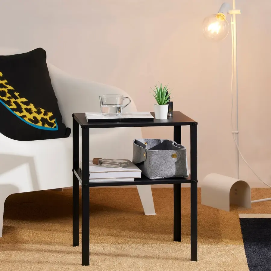 ИКЕА IKEA Простая черная прикроватная тумбочка, которую легко складывать и перемещать, в которой достаточно места для вещей, которые вы хотите всегда иметь под рукой. Он впечатляет своим стилем, где бы ни находился. Оригинальная икея/ikea