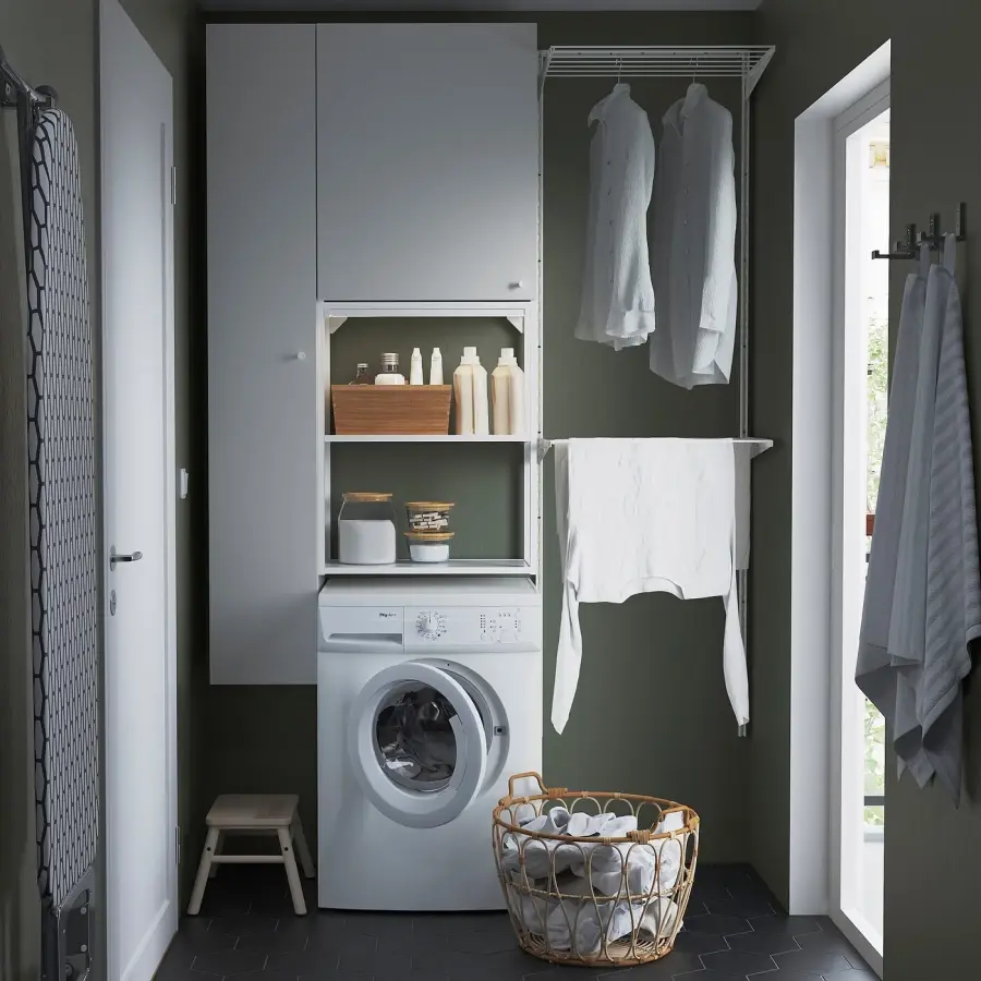 ИКЕА IKEA Серия ENHET упрощает внедрение нового решения в прачечной. Эта комбинация предлагает идеальное сочетание открытого и закрытого хранения, а также специально разработанное место для стиральной машины и корзины для белья. Оригинальная икея/ikea