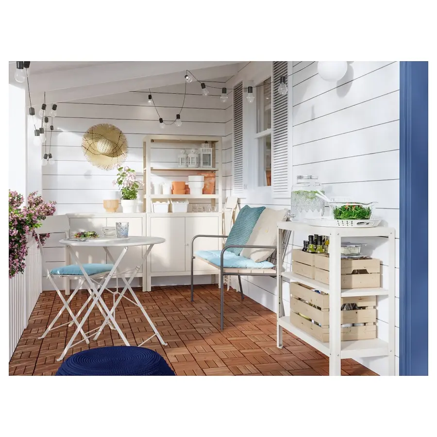 ИКЕА IKEA Практичное решение для хранения с открытыми полками для садового инвентаря и цветочных горшков. Также здесь есть просторные шкафы, в которых можно хранить подушки и другие вещи, которые нужно защитить от солнца, дождя и грязи. Оригинальная икея/ikea