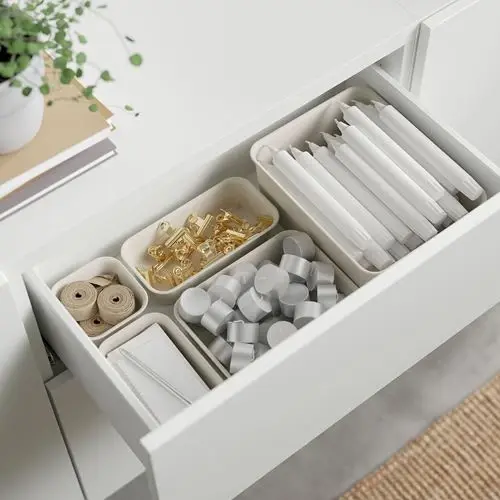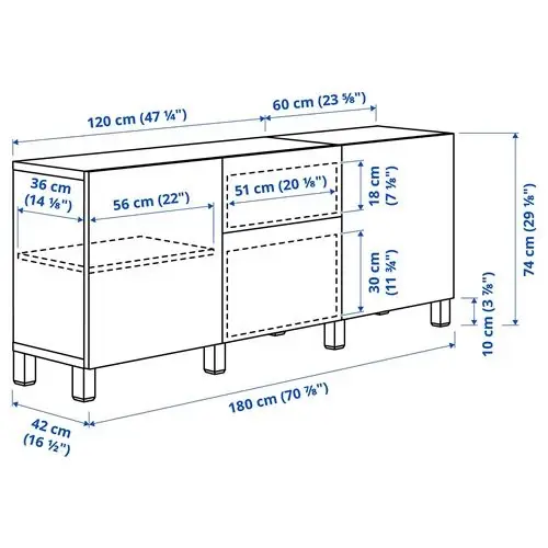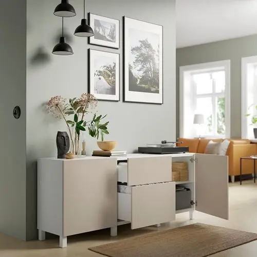 Регулируемые петли позволяют регулировать дверь по горизонтали и вертикали. Ящики оснащены встроенными открывателями, поэтому их можно открыть легким нажатием. Полки регулируются, поэтому вы можете настроить пространство для хранения по мере необходимости. Два выдвижных ящика позволяют легко хранить ваши вещи в порядке. Полки за дверцами предоставят вам еще больше места для хранения. Оптимизируйте и организуйте свое хранилище БЕСТО с помощью коробок и вставок, которые вам нравятся.