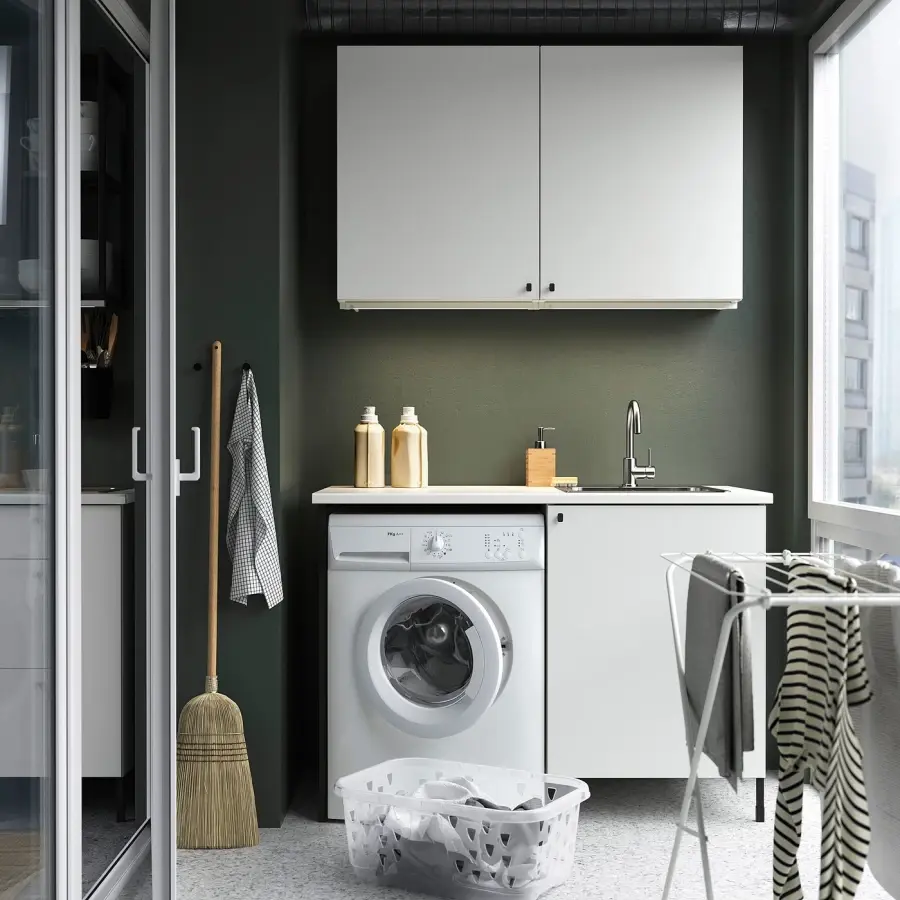 ИКЕА IKEA Шкафы с дверцами придают этому небольшому решению единый вид. Столешница идеально подходит для складывания и размещения белья, а пространство под ней идеально подходит для хранения всего, что вам нужно. Оригинальная икея/ikea