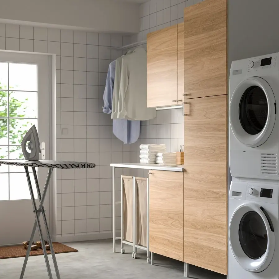 ИКЕА IKEA В шкафах достаточно места для размещения текстиля, моющих средств и чистящих средств, а закрытое хранилище придает вам аккуратный и однородный вид. Раковина в прачечной удобна для стирки одежды вручную или наполнения/опорожнения ведер для чистящих средств, а в нижнем шкафу есть просторное место для хранения более объемных вещей. вариант, если вы создаете место для стирки в своей ванной комнате. Добавьте крючки ENHET на опорную боковую панель, чтобы повесить полотенца, или создайте больше места для хранения с помощью контейнеров СКАТТОН. Продается отдельно. Здравый смысл и чувство в прекрасном партнерстве. Поверхность фольги устойчива к влаге, царапинам и ударам, а рисунок дерева создает живое и теплое выражение. Оригинальная икея/ikea