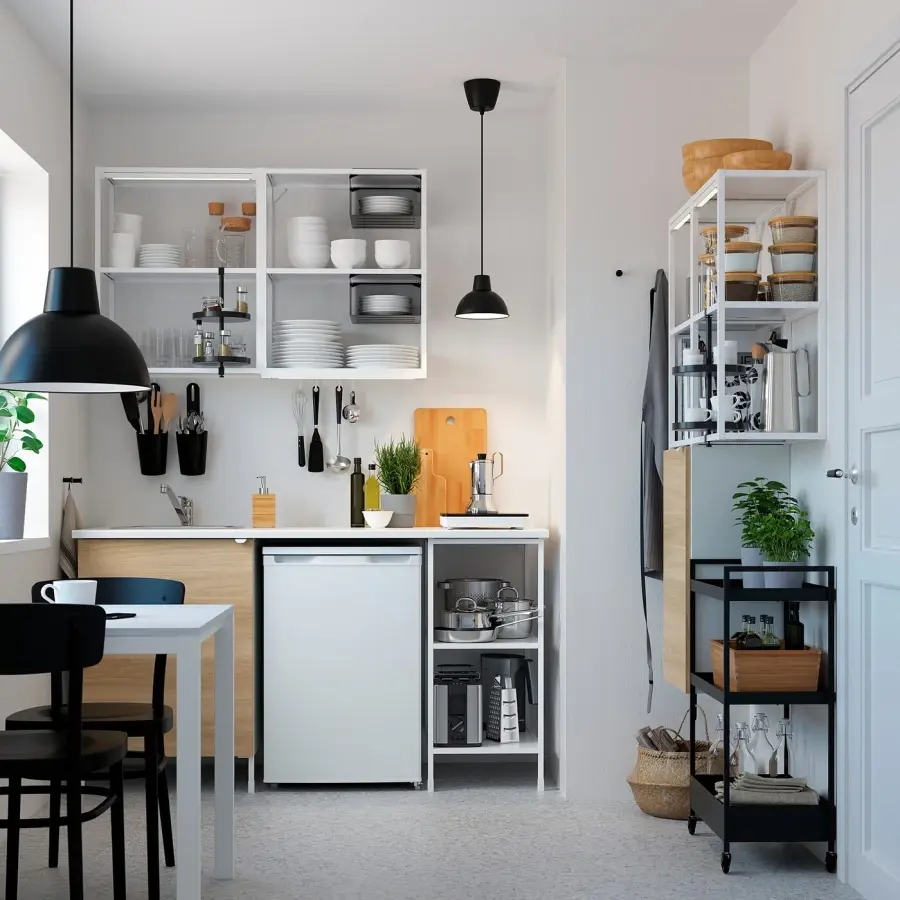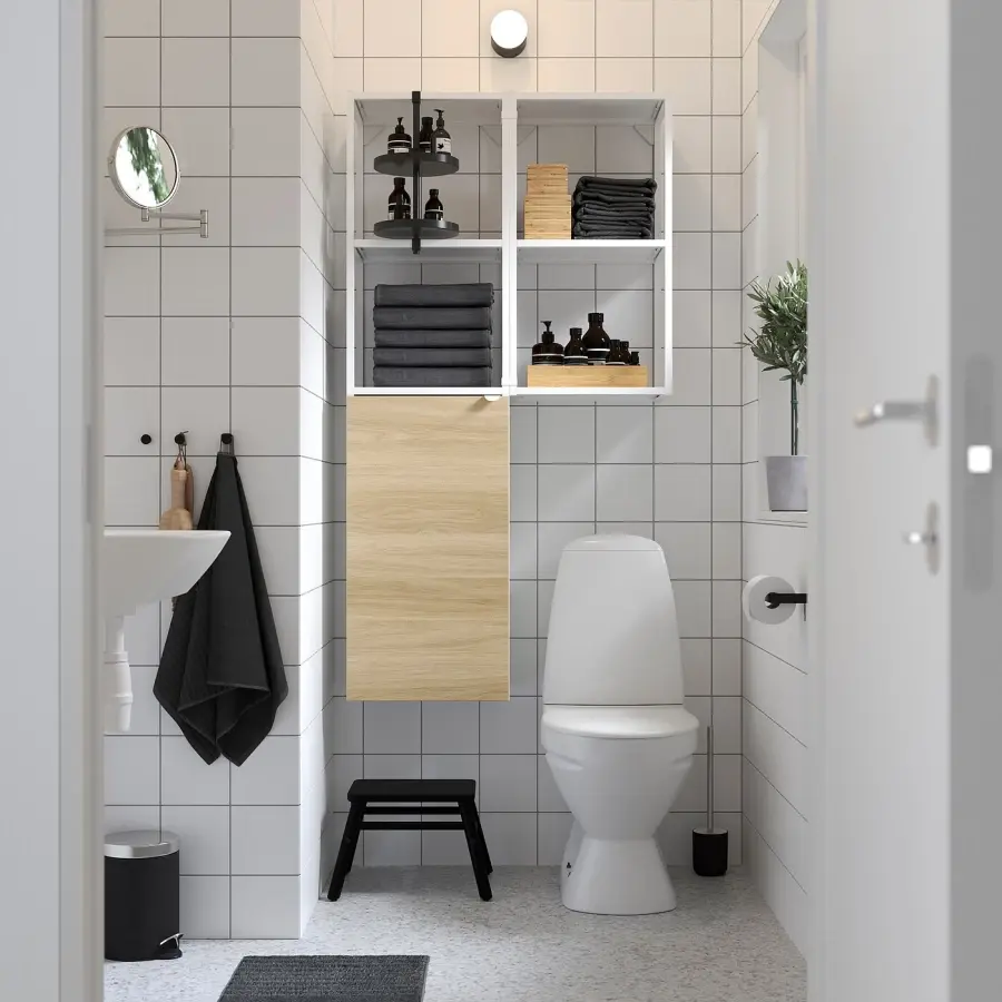 ИКЕА IKEA Серия ENHET облегчает начало новой работы на кухне, в ванной или прачечной. Эта комбинация представляет собой идеальное сочетание открытых и закрытых шкафов и предлагает место для мусорного бака и/или полотенец. Оригинальная икея/ikea