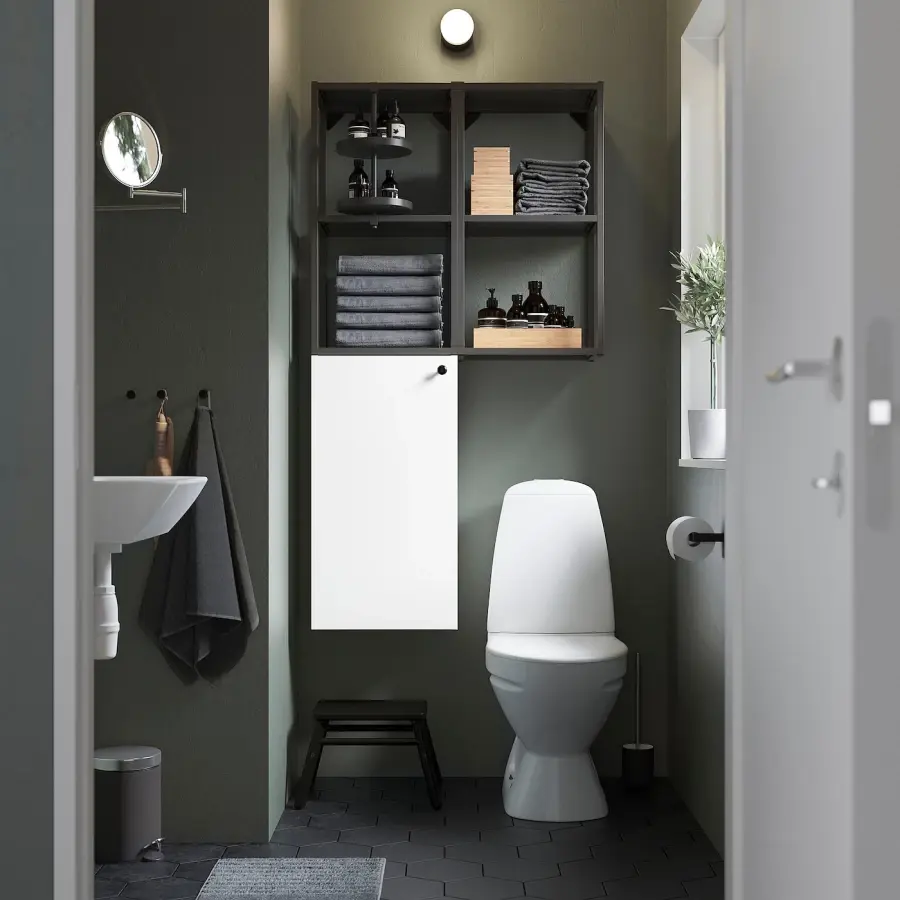 ИКЕА IKEA Серия ENHET облегчает начало новой работы на кухне, в ванной или прачечной. Эта комбинация представляет собой идеальное сочетание открытых и закрытых шкафов и предлагает место для мусорного бака и/или полотенец. Оригинальная икея/ikea