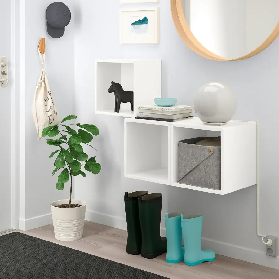 ИКЕА IKEA С настенным ЭКЕТ вы максимально используете площадь стены, освобождая место на полу. Спрячьте или выставьте свои вещи, комбинируя открытое и закрытое хранение. Асимметричное решение для хранения, которое становится лично вашим, когда вы наполняете свои вещи. Оригинальная икея/ikea