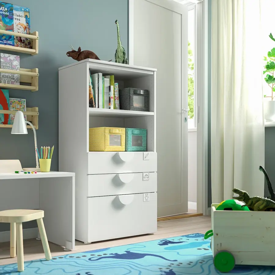 ИКЕА IKEA Открытые полки идеально подходят для книг и предметов коллекционирования или для демонстрации последних проектов декоративно-прикладного искусства, а поскольку ваш ребенок может их видеть, это стимулирует их желание играть. Идеальная высота для маленьких детей. Они могут легко дотянуться и найти вещи самостоятельно. Этот предмет мебели для хранения может следовать за вашим ребенком от малышей до подростков и до тех пор, пока у них не будет собственного места. Идеально подходит для мест с ограниченным пространством, поскольку рама узкая. Продуманный дизайн направляющих позволяет ящику слегка выдвигаться, когда его выдвигают, чтобы сэкономить место. Устойчиво стоит на неровном полу благодаря входящим в комплект регулируемым ножкам. Оригинальная икея/ikea