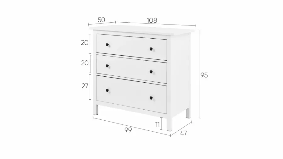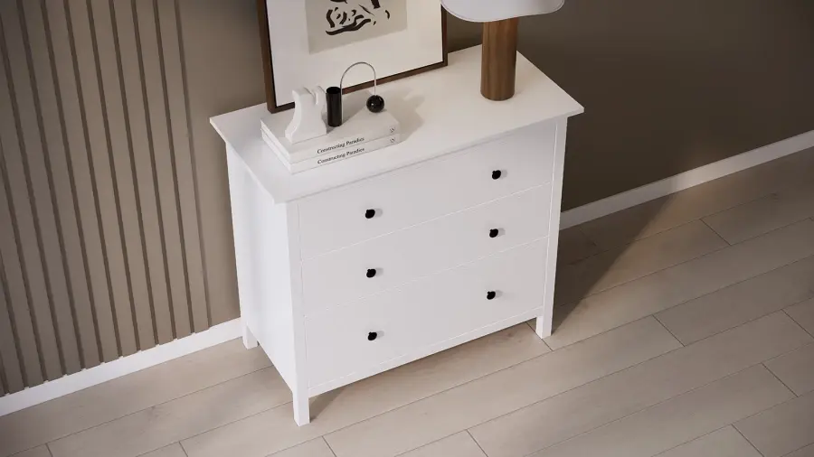 Элегантный и функциональный комод КЫМОР с тремя ящиками станет отличным дополнением вашего интерьера. Этот комод идеален для хранения одежды, белья и других вещей, обеспечивая порядок и удобство в вашем доме.
