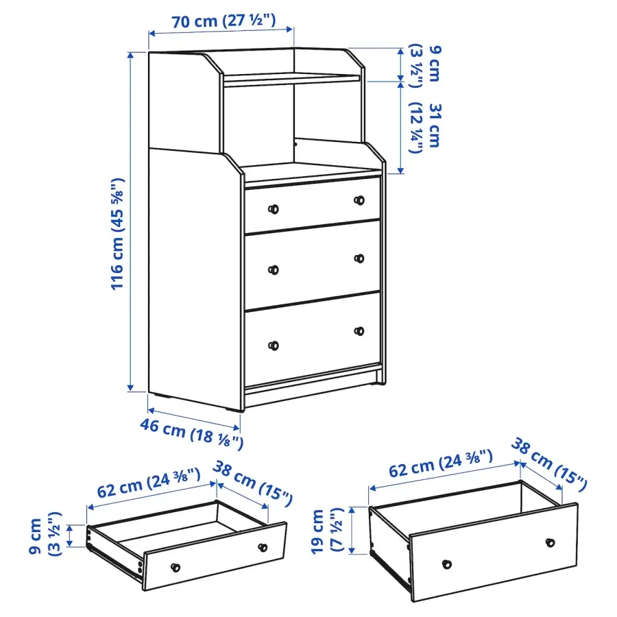 ИКЕА IKEA Конечно, ваш дом должен быть безопасным местом для всей семьи. Вот почему в комплект входит защитная фурнитура, чтобы вы могли прикрепить комод к стене. Предназначена для использования в доме как самостоятельно, так и идеально сочетается с другой мебелью серии HAUGA, либо для согласования стиля, либо для создания больших решений для хранения. Благодаря характерному внешнему виду и продуманному дизайну мебель серии HAUGA хорошо работает сама по себе и даже лучше вместе. Плоские, гладкие стороны создают бесшовные блоки, когда предметы располагаются рядом друг с другом. Универсальный предмет мебели, который можно использовать в самых разных комнатах дома. Максимизируйте пространство для хранения и создайте согласованный вид, создав собственную комбинацию хранения HAUGA. Характерная верхняя полка является общей чертой всей серии HAUGA и дополняет традиционный стиль. Независимо от того, используете ли вы его для шляп, коробок или украшений, край удерживает ваши вещи на месте. Спрячьте или выставьте свои вещи, комбинируя открытое и закрытое хранение. Если вы хотите навести порядок внутри, вы можете дополнить интерьер аксессуарами из серии STUK. Каркас легко собирается благодаря конструкции с клиновидным дюбелем, который легко вставляется в предварительно просверленные отверстия. Оригинальная икея/ikea