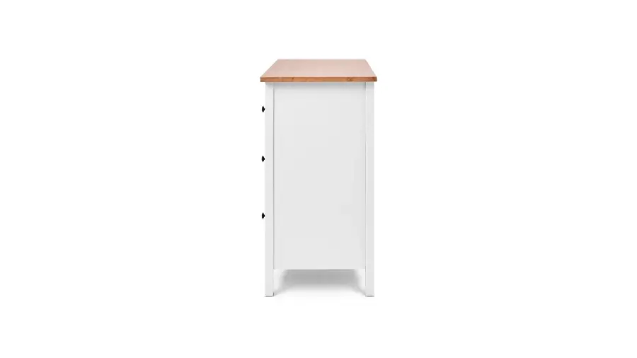 - Изготовлен из массива сосны. Дерево пропитано морилкой и покрыто прозрачным лаком на водной основе.