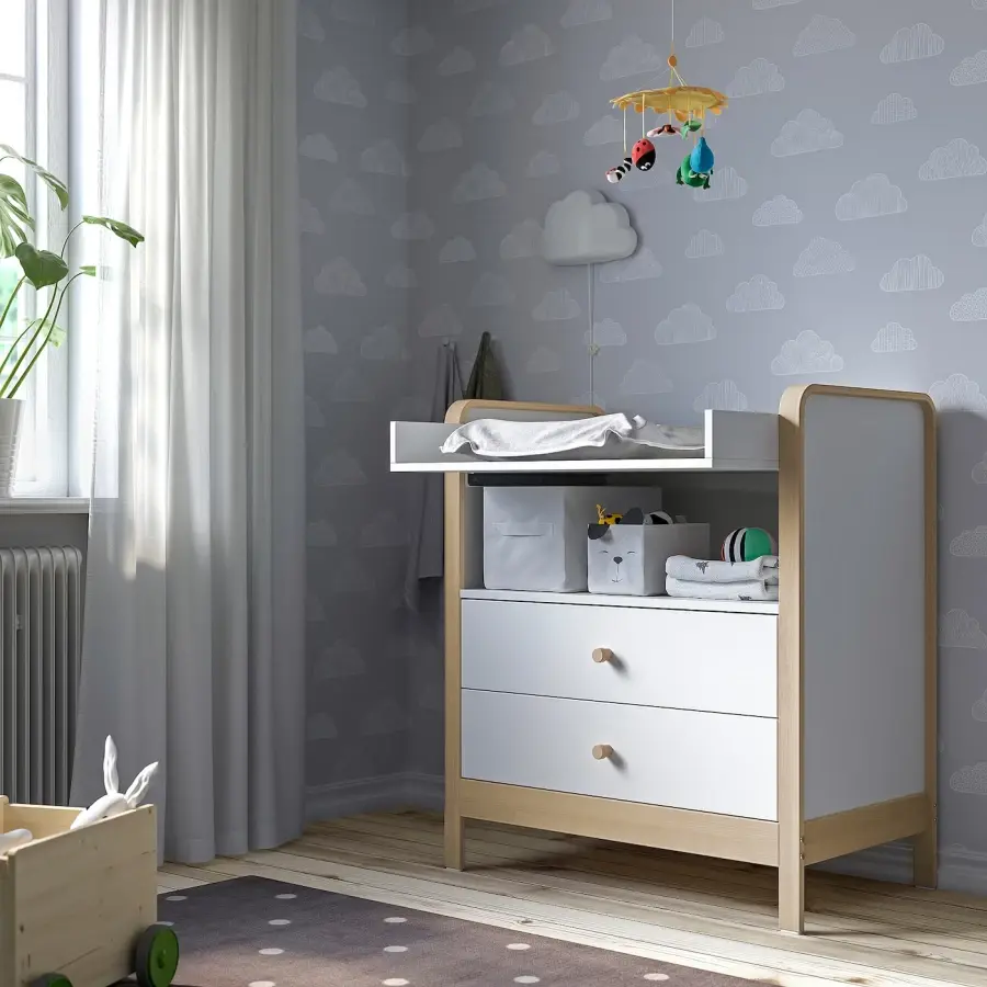 ИКЕА IKEA С серией ЭЛСКВЭРД вы создадите для ребенка полностью скандинавскую комнату. Здесь вы можете держать под рукой подгузники и одежду. А когда малыш вырастает из подгузников, пеленальный столик превращается в комод. Оригинальная икея/ikea
