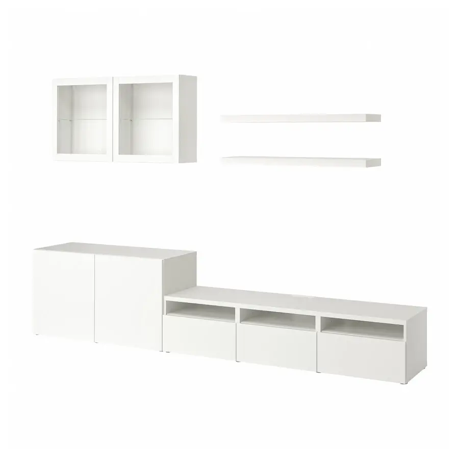 ИКЕА IKEA Иногда приятно, когда кто-то делает всю работу за тебя. В готовую комбинацию входят тумба под телевизор, настенные полки, шкафы со стеклянными дверцами и продуманные дополнительные функции. Просто решите, как вы хотите их использовать! Оригинальная икея/ikea