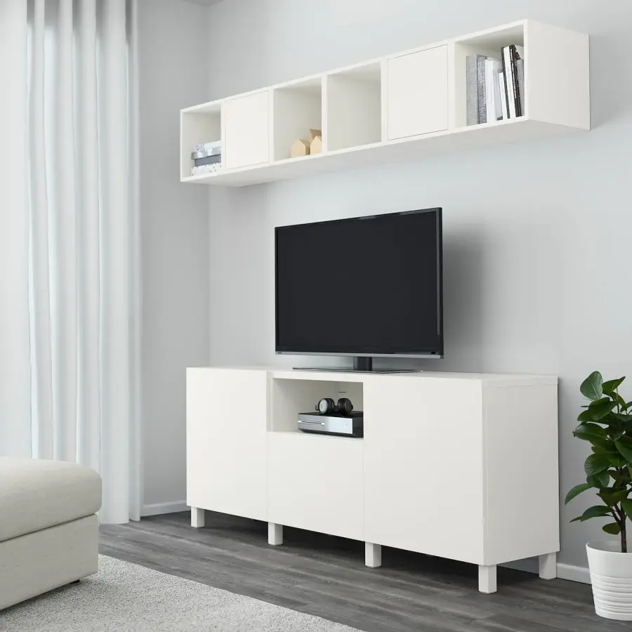 ИКЕА IKEA Спрячьте или покажите свои вещи, комбинируя открытое и закрытое хранение. Ящик имеет встроенную кнопку для открывания, поэтому вам не нужны ручки или ручки, и вы можете открыть его легким нажатием. Регулируемые ножки делают тумбу под телевизор устойчивой даже на неровном полу. Оригинальная икея/ikea