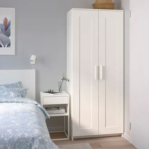 ИКЕА IKEA Каркас кровати БРИМНЭС имеет скрытые места для хранения в нескольких местах — идеально, если вы живете в небольшом пространстве. Благодаря встроенному в изголовье ящику для хранения вещей все будет под рукой. Под кроватью аккуратно спрятаны 4 больших ящика для хранения одеял, подушек и постельного белья. В комоде БРИМНЭС с 3 ящиками можно хранить все, от полотенец до одежды. Верхний ящик с матовым стеклом создает особый образ. В гардеробе БРИМНЭС есть платяная штанга для рубашек и платьев, внутренняя полка для сложенной одежды, такой как футболки и свитера, а также есть место, чтобы повесить длинную одежду. Оригинальная икея/ikea